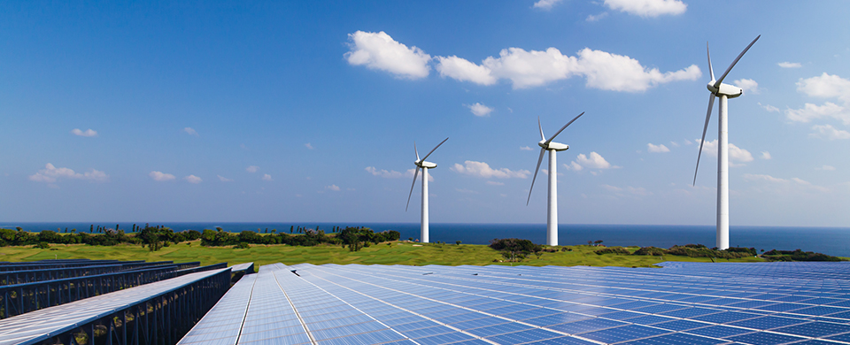 気候変動対策としての温暖化ガス削減が世界的潮流となっている中、九電工グループは、再生可能エネルギー発電所の工事施工や事業運営、さらには一般設備工事の省エネルギー提案などを通して、地球環境に対する貢献を実践しています。2012年にFIT法が施行されたことをきっかけに、メガソーラーを中心とした太陽光発電所建設工事の受注・施工を本格的に開始しました。また、太陽光発電だけでなく、風力発電やバイオマス発電にも早くから着目し、同発電設備の建設・運営にも携わっています。